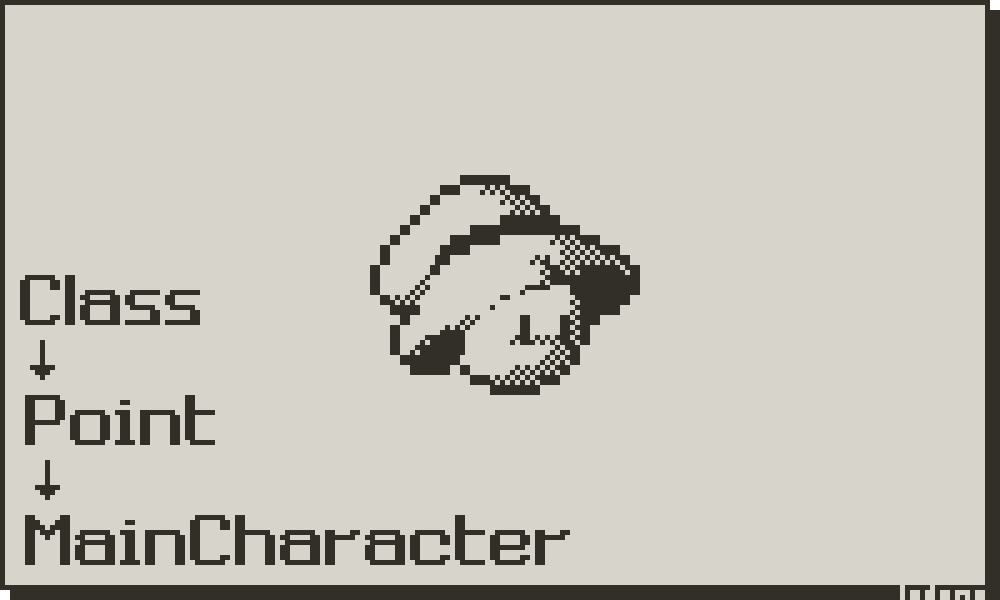 I used object.lua from the Playdate SDK’s CoreLibs as a reference. It provides a working class system, but includes methods I either didn’t need or didn’t fully understand. I’ve kept the bare minimum and will push code up and down as needed.